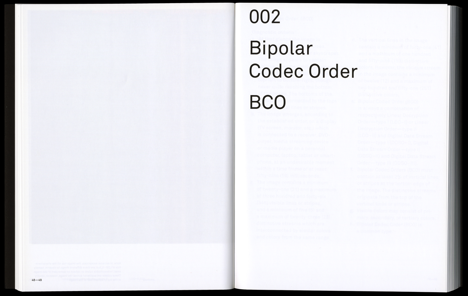 What is notable about the enormous collection of glitches that Barry collected, is that almost all of them can be easily categorised. Some types were very common, others very rare. When editing the book, we could visualise this phenomenon by trying to use nearly all images, but on very different sizes. Rare ‘orders’ would get large images, more common ones would have spreads filled with very small ones. To counter the problem of printing typical RGB images in CMYK, we did various test prints to find out that mixing in 30% fluor inks with the regular cyan, magenta and yellow inks resulted in a way more vivid printing quality.